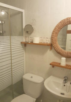 Dusche/WC , sowie einen sonnigen Balkon mit Tisch und Liegestühlen.